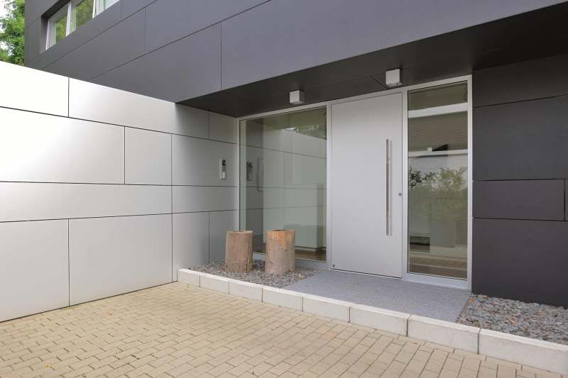 Firma Hörmann posiada w swojej ofercie drzwi wejściowe oraz garażowe wykonane z aluminium lub stali oraz szereg możliwości opcji pozwalających dopasować drzwi do Państwa potrzeb. Producent zapewnia opcjonalne przeszklenia i szeroki wybór kolorów do niemal wszystkich wzorów drzwi zewnętrznych. Dostępne są także naświetla boczne i / lub naświetla górne.