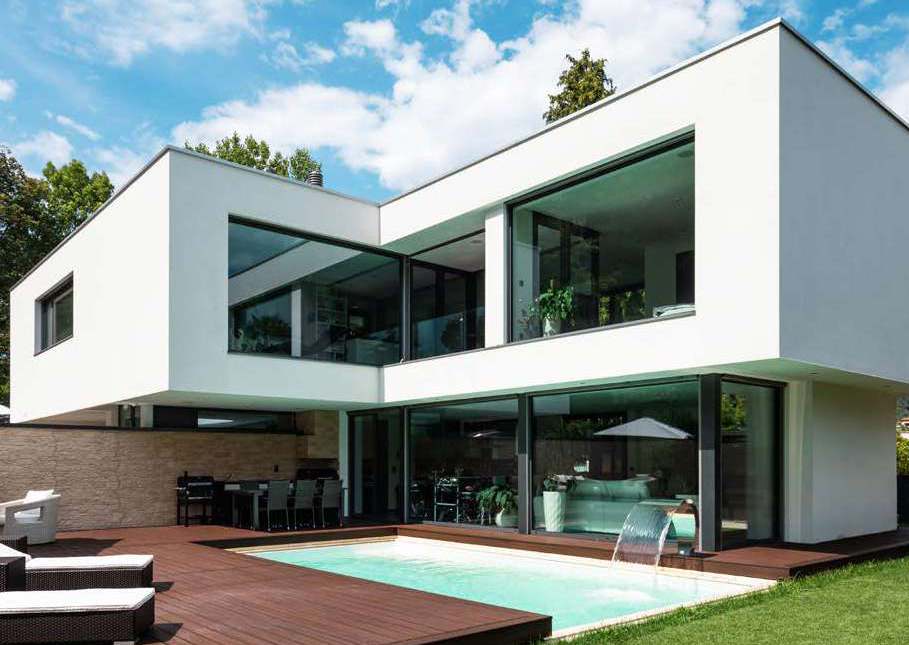 Płaska powierzchnia aluminium tworzy prosty i bardzo nowoczesny kształt. PURE charakteryzuje się niewidocznym z zewnątrz profilem skrzydła aluminiowego, czego efektem wizualnym jest jedna rama, jak w przypadku stałego szklenia. Skrzydło ukryte za ramą wygląda na nieotwierane, a w rzeczywistości jest w pełni użytkowe. Rozwiązanie nadające budynkowi nowoczesny, minimalistyczny wygląd.