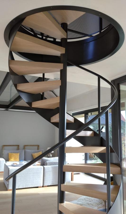 Zakres wykonanej usługi: pomiar, dystrybucja, montażRealizacje > Wnętrza > Schody na konstrukcji metalowej